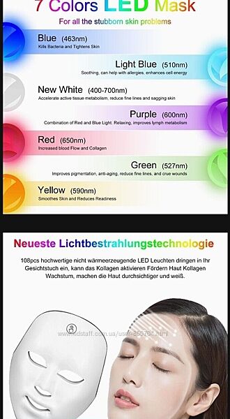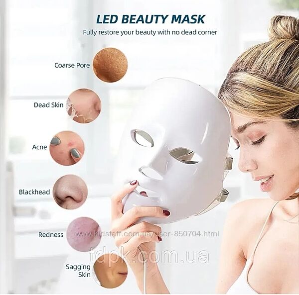 Подробное описание: Світлодіодна маска для омолодження обличчя - 7 кольорів