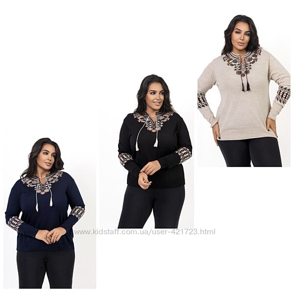 Пропоную трикотажні джемпери вишиванки жіночі в розмірі батал,супер-батал,норма в сучасному українському стилі на сезон осінь-зима-весна Запитуйте,будь-ласка,підберемо на любий розмір Є живі фото джемперів вишиванок (галерея) Всі кольори на фото Дивіться інші моі об‘яви-є різні моделі вишиванок