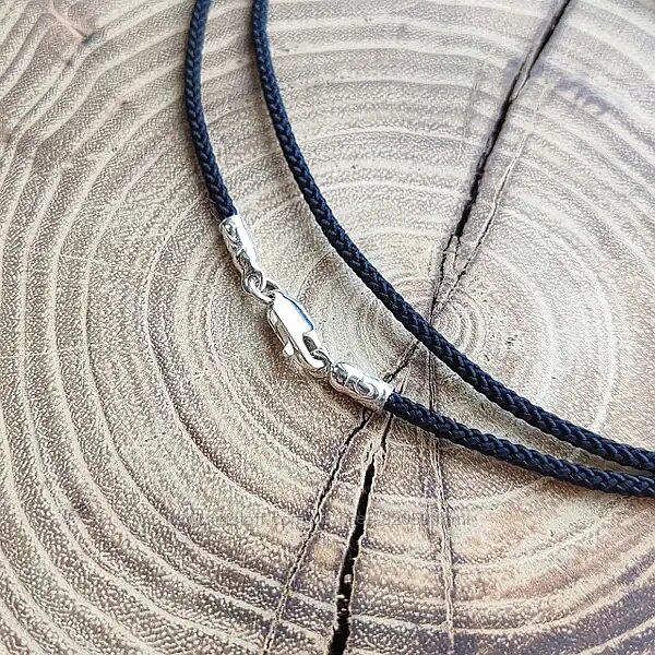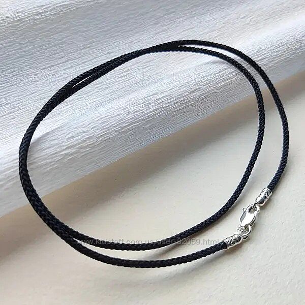 Подробное описание: Плетений шовковий шнурок на шию з срібним замком