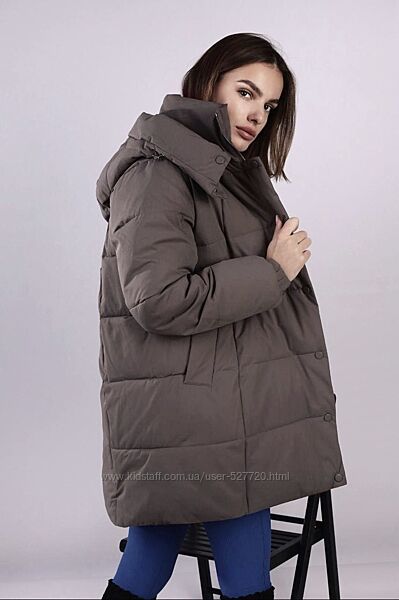 НАЛИЧИЕ УТОЧНЯЙТЕ ПОЖАЛУЙСТАЖенская зимняя куртка с капюшоном выполнена из матовой плащевки. Модель свободного силуэта, застегивается на молнию, а сверху кнопками. Имеются боковые карманы, низ рукава на резинке.