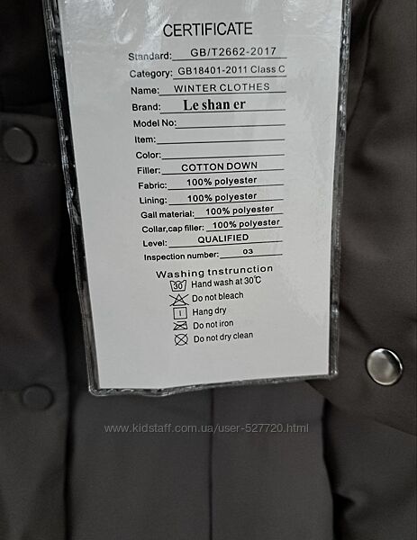Утеплитель по бирке: хлопковый пух (cotton down)