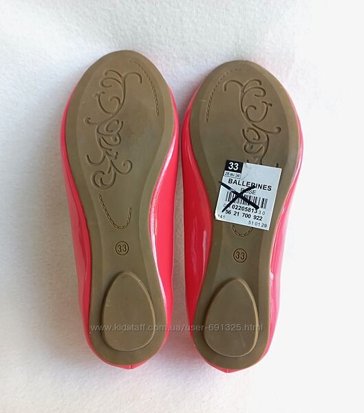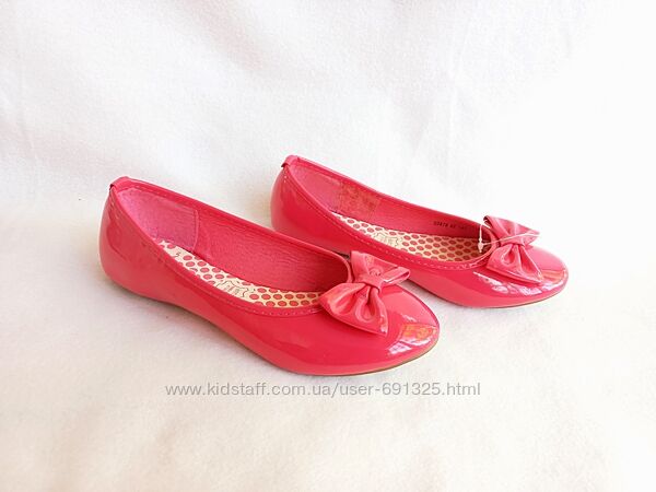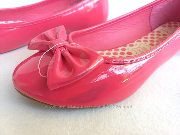 Пропоную яскраві коралові балетки, від Naf Naf. Штучна лакована шкіра, устілка з натуральної шкіри. Нові, стан загалом добрий, але нажаль проступила темна пляма збоку, дивиться фото.Купляла через інтернет, тому немає коробки.