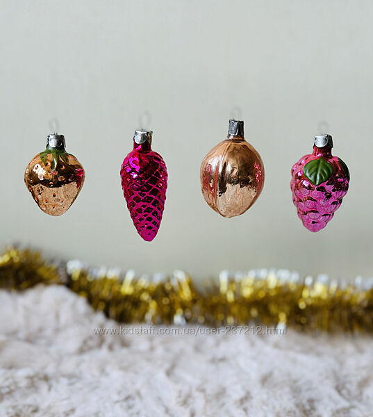 Подробное описание: Набор из 4 небольших старинных елочных игрушек, новогодние украшения ссср