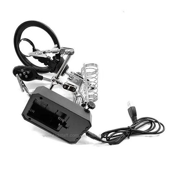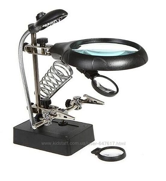 Подробное описание: Держатель с лупой, двумя крокодилами и Led подсветкой третья рука Te-800