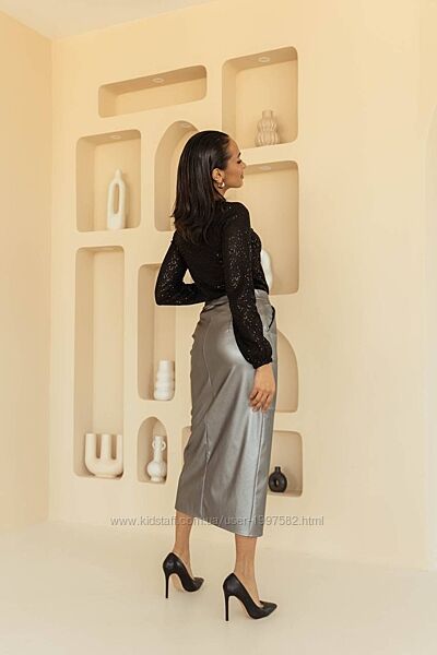 Подробное описание: Спідниця шкіряна міді з розрізом з високою талією олівець з екошкіри