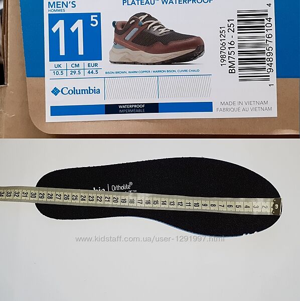 US 11.5, UK 10.5, EU 44.5, 29.5см - ручний замір устілки 29.5см.