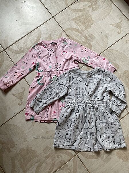 Вʼязана темно- сіра светр-туніка Waikiki, сіра і рожева сукні на флісі George, светр H&M,