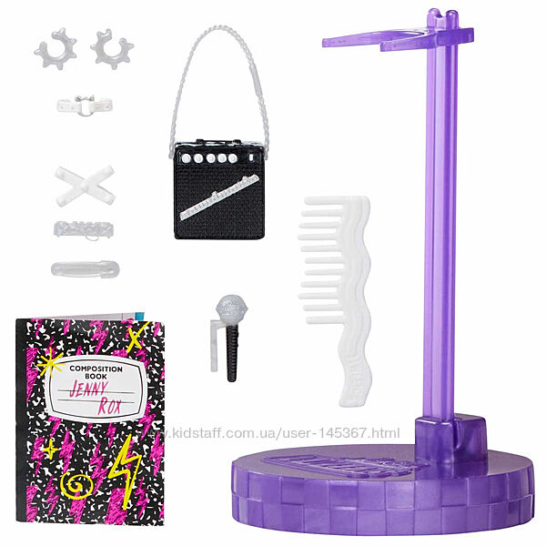 Одягніть Дженні Рокс у її унікальний одяг і аксесуари, щоб продемонструвати її стиль рок-зірки, включно зі стильними гетри, модною картатою спідницею та шикарним багатошаровим топом! Порада від професіонала: ручки знімаються, що спрощує одягання.