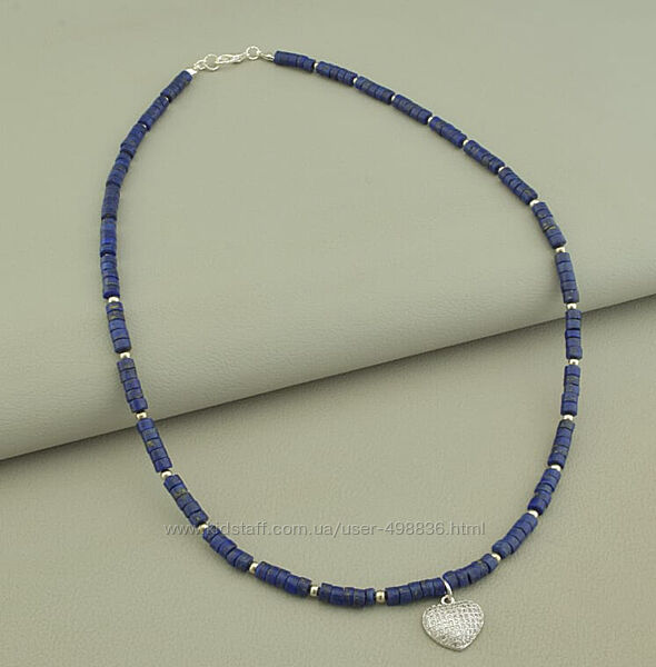 Чокер из натурального камня Лазурит, натуральные Фианиты . Кулон размер 17х13 мм.Длина 49 см. Вес 18,4 грамм.