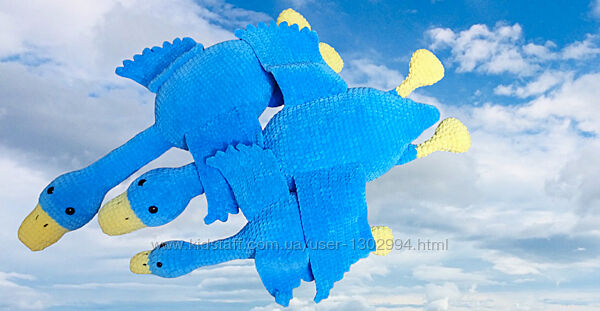 М´яка іграшка з плюшевої пряжі (Himalaya dolphin baby) в жовто-блакитному кольорі. Справжній український гусак)Очі на безпечному кріпленні, наповнення гіпоалергенний холофайбер. 65 см.