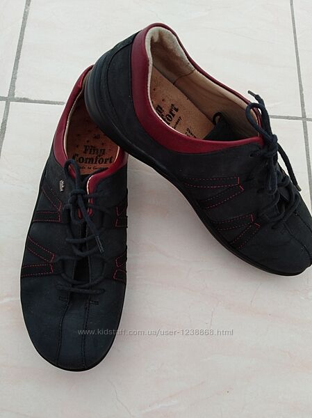 Ортопедические спортивные туфли Finn comfort Germany.Изготовлены из нубука,отделка из кожи бордового цвета, ортопедическая стелька из кожи и пробкового дерева.Размер 38, стелька 24 см.