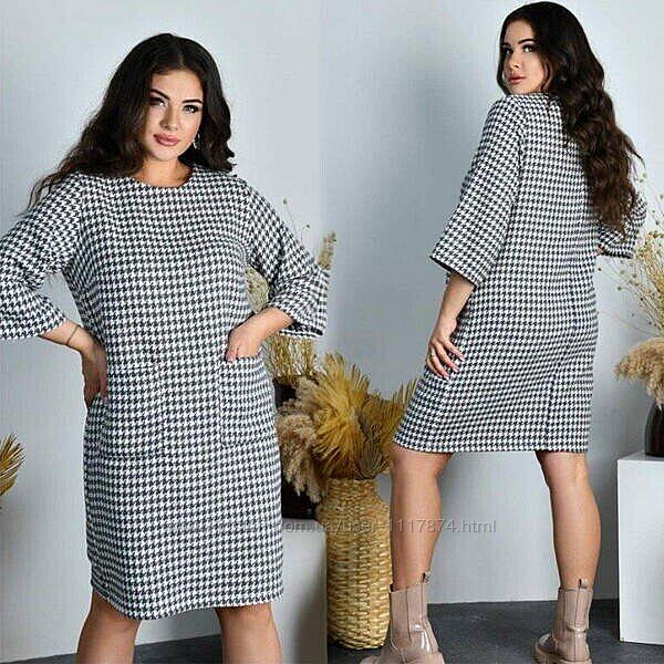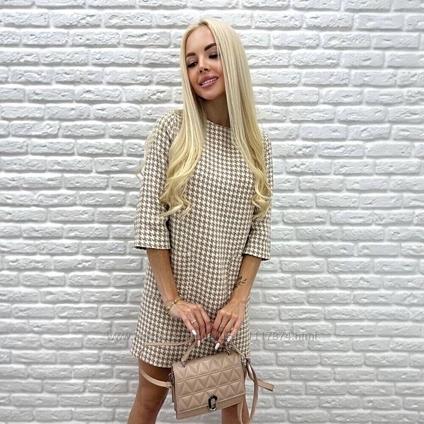 Подробное описание: 42-52р Твідова сукня з принтом в гусячу лапку Rosemary