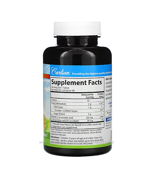 # Carlson, Дитячий жувальний вітамін C, натуральний мандарин, 250 мг, 60 таблетокОПИС: