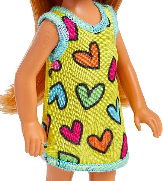 Лялька Челсі та її друзі надихають уяву юних досліджувати свій світ!Ця 6-дюймова лялька Челсі дуже мила в жовтій сукні з кольоровим сердечком.