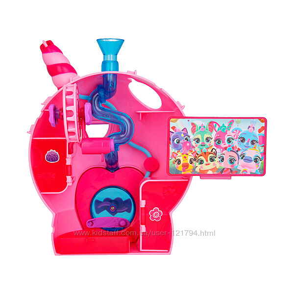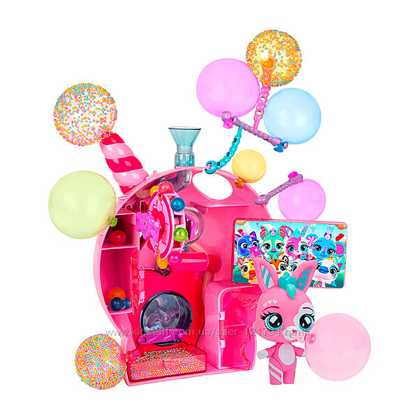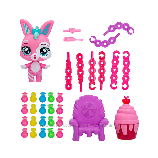 У наборі є колекційний кролик та понад 15 різних аксесуарів: крісло, наліпки, кульки, трубочки для надування.