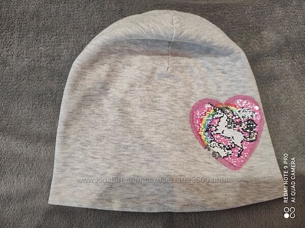 Подвійна хлопкова демісезонна шапочка Elf-Kids, розмір 52. На вік 7-9 років.Стан нової, бездефектів.склад 95 % бавовна, 5 % еластин. Красиво прикрашена паєтками у вигляді