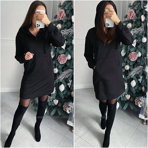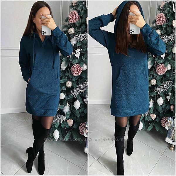 Сукня-туніка з капюшоном.Тканина стьобаний теплий трикотаж,