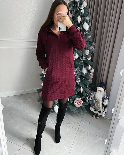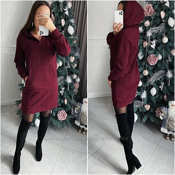 Тепла сукня-кенгуру з капюшоном, рукави та низ манжет, попереду кишеня, зручний капюшон зі шнурком