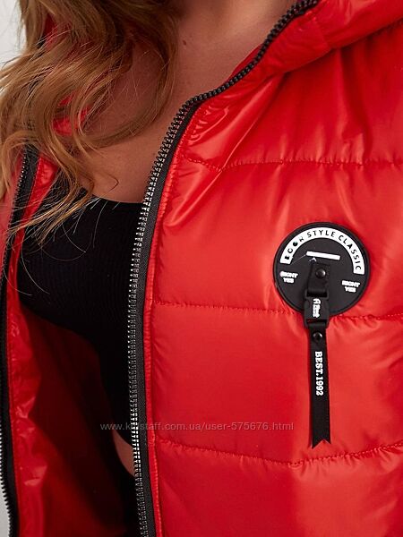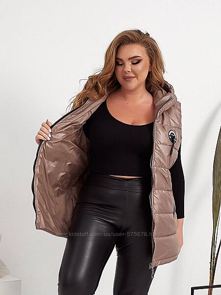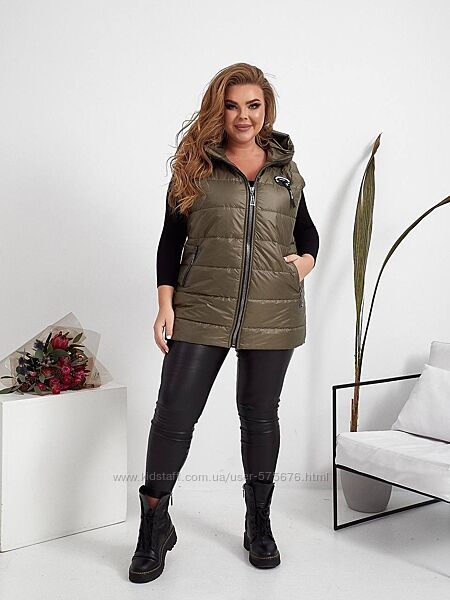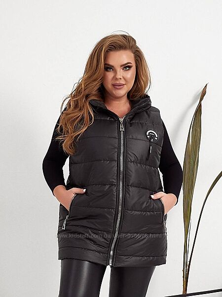 Стильна стегана жилетка прямого крою з кишенями на змійці, зручний глибокий капюшон, декорована лампасом, якісна фурнітура.