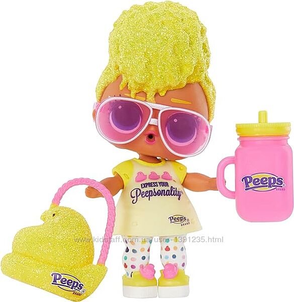 Блискучі, мерехтливі деталі: кожна лялька має унікальний стиль з мерехтливими деталями, які поєднуються з вашими улюбленими ласощами Peeps!
