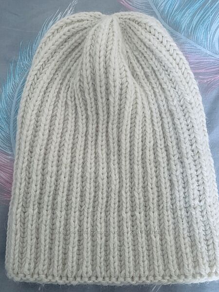 Подробное описание: Шапка теплая в 2 нити, зимняя, с отворотом, ручная вязка