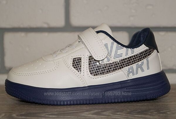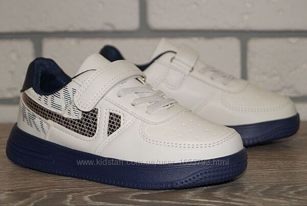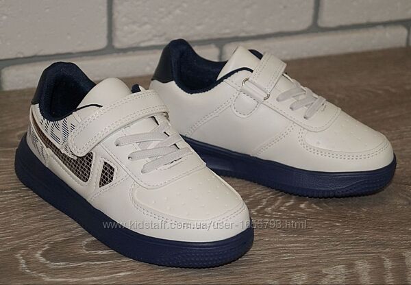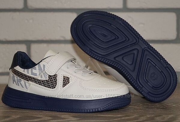 Стильні кросівки для хлопчика. Оригінальне поєднання кольорів - білий верх та синя підошва, виглядають дуже ефектно та яскраво.Пошиті із якісної штучної шкіри. Мають м`яку текстильну підкладку. Доповнені шкіряною устілкою із супінатором та жорстким задником, який добре фіксує стопу. Максимально легкі та зручні на ніжці.