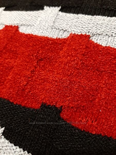 Красивий светр у смужку червоний-чорний-сірий, демі/зима, жіночий.Розмір 44-46. Акрил.