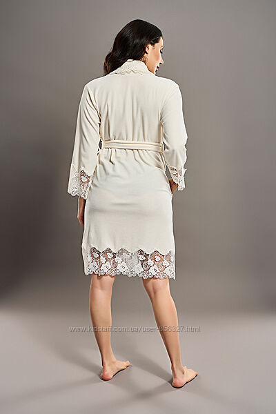 Халат украшен шикарным кружевом. Удобный рукав 3/4.