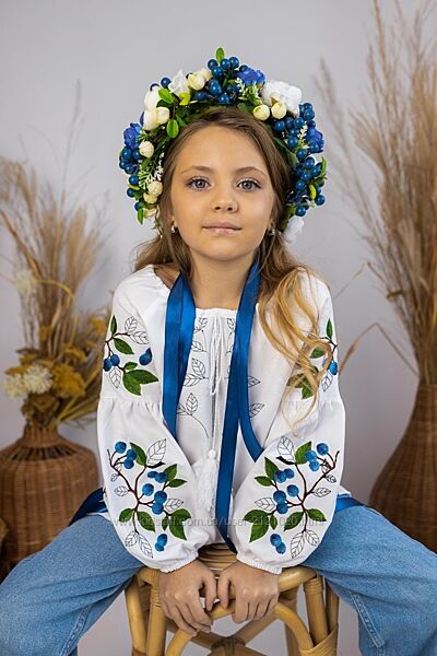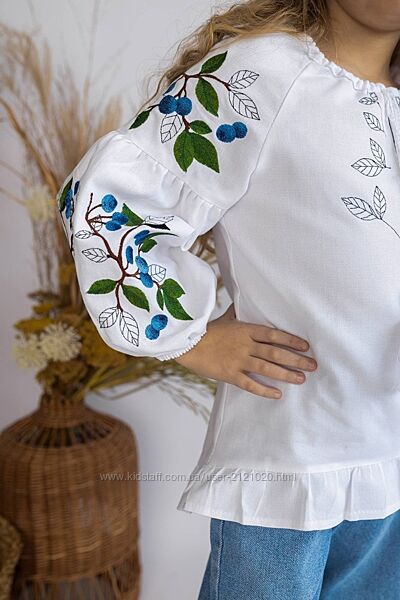 Розмірний ряд: 86-164Сорочка вишиванка оригінального силуетного пошиву. Сорочка має окреслений сучасний рослиний малюнок свіжої лохини.