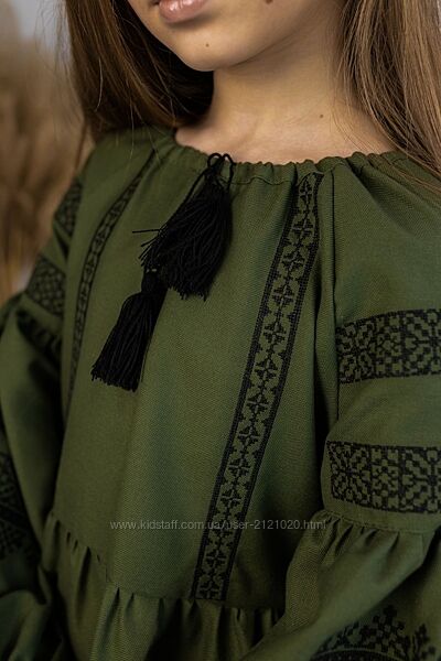 Подробное описание: Сукня вишиванка для дівчинки хакі, сукня з вишивкою хакі дитяча,