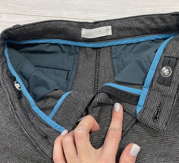 Штани Zara p. 8класичні, сіро-чорного кольору, на зріст вказано 128 см,. в складі віскоза та котон, добре тягнуться. Ідеально до школи, дуже комфортні в носці, не сковують рухи, бо еластичні. Такі вже декілька зносили, ці не встигли, зрізали бірку лише паперову, так нові, не вдягали. Довжина загальна 76 см, кроковий 54 см, пояс 31 см (є утяжка), бедра 37см. Ціна 450грн.Є такі ж темно сині штани розмір 9 нові з паперовою біркою 500 грн