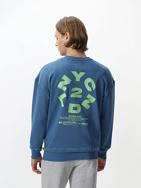 Толстовка с круглым вырезом и длинными рукавами. Удобная ребристая отделка на воротнике, манжетах и подоле. Принт спереди на груди и крупный принт на спине. Изготовлен из приятной ткани без начеса.