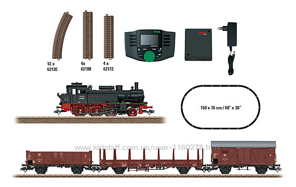 Trix 21531 - Цифровий стартовий набір з паровозом BR74 та трьома вантажними вагонами.Стартовий набір із багатьма деталями та аксесуарами для цифрового світу Trix H0 ідеально підходить для знайомства новачків і шанувальників моделей залізниці віком від 15 років.