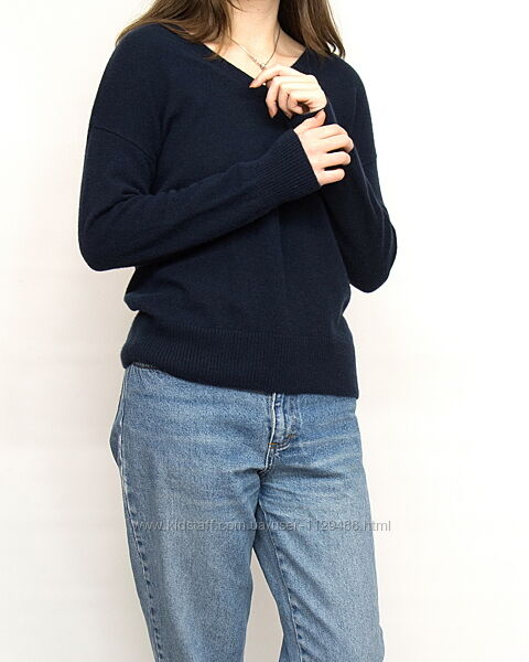 Модель актуальная, универсальная, крой свободный, линия плеча спущена, вырез уголком, не глубокий. Выполнен из плотного мягчайшего теплого эластичного кашемира, в темно-синем цвете. Сочетается с любым низом.