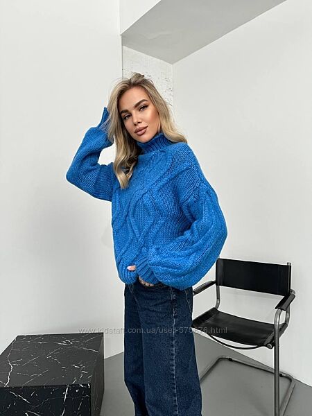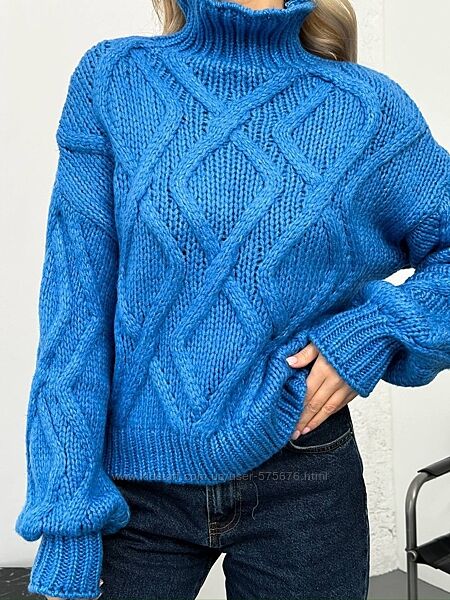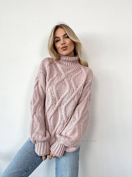 Подробное описание: Теплий светр із високою горловиною узор косами