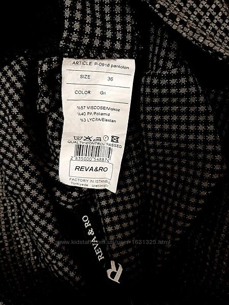 Чудові брендові штани чорно-сірі у клітинку, демісезонні, повсякденні, жіночі, бренд Reva&Ro. Туреччина.Маркування 36, наш р 44. За вимірами підходить на 44 /46, 46, 46/48. Порівнювайте по своїх вимірам.