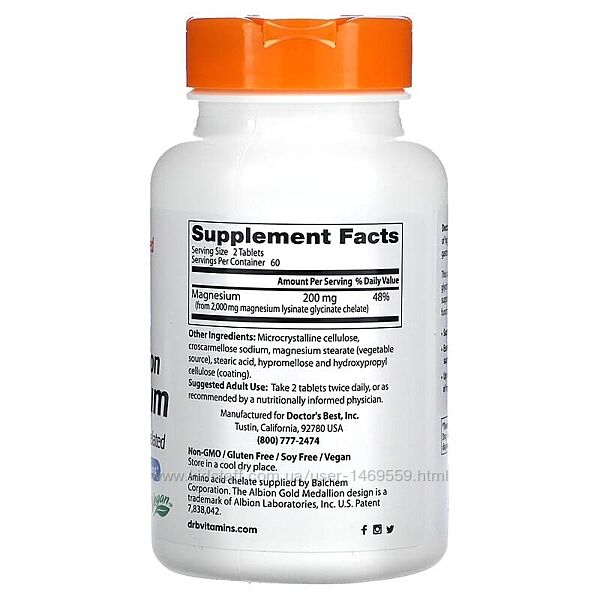 Подробное описание: Doctor´s Best повністю хелатований легко засвоюваний магній з мікроеле