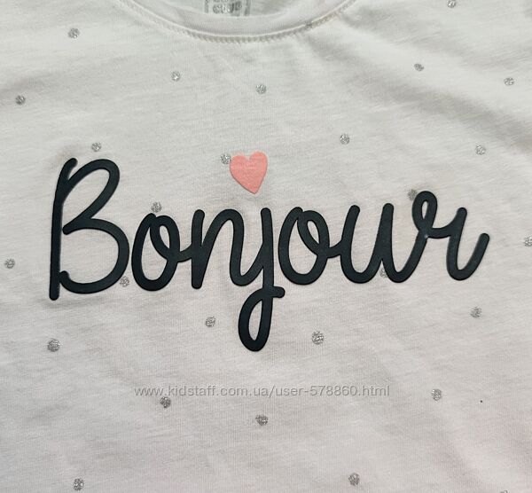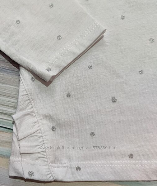 Білий ошатний реглан з написом для дівчинки від Cool Club у розмірі 104 (с18).Срібний горошок по всьому реглану, з боків оборки.