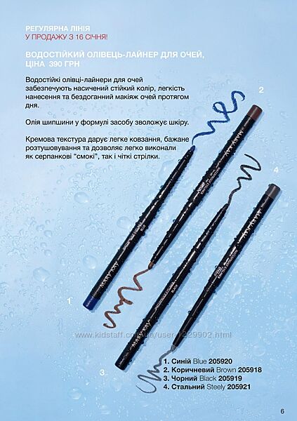 Подробное описание: Водостійкий олівець-лайнер для очей Синій, сірий чорний коричн в наявності