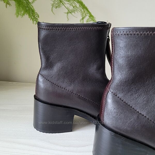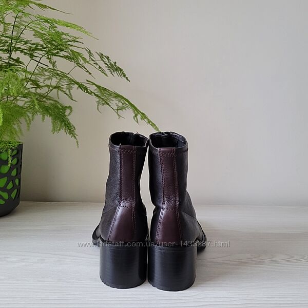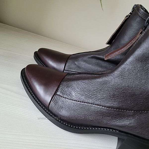 Верх із м´якусінької шкіри, облягають як панчохи. Серединка текстильна. Устілка шкіряна, анатомічна. Гнучка підошва. Фіксуються на блискавку. Колір темно-темно коричневий, майже чорний. ❗️На вузеньку стопу❗️