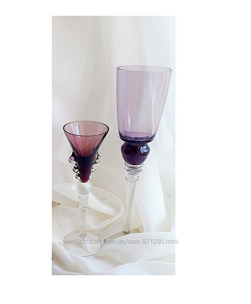 марганцевое стекло, гранатовое стекло, цветные бокалы, бордовые бокалы, красные бокалы, цветной хрусталь, цветные фужеры, бордовые фужеры, витая ножка, фантазийное стекло, цветное стекло, рюмки, цветные рюмки, гнутое стекло