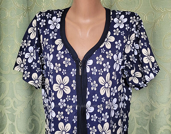 Подробное описание: Халат женский, летний на молнии с коротким рукавом хлопок 58 р