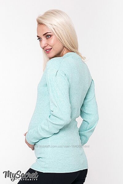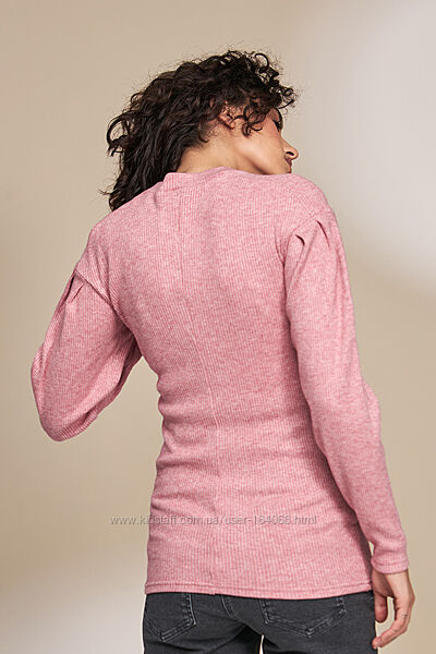 Розміри над фотоТеплий светр для вагітних із вовняного трикотажу-гумку з рукавами-буфами.