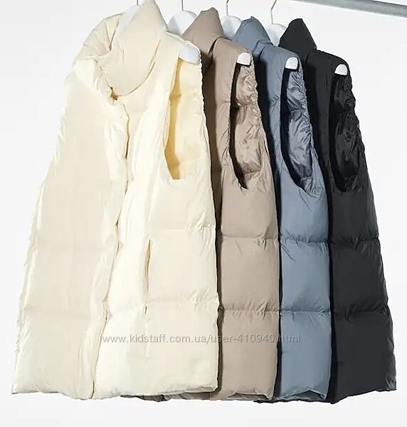 Кольори та розміри : бежевий- ПРОДАНО, блакитний-ПРОДАНО; білий-L; чорний-ПРОДАНО- Теплий, якісний пух з потужністю наповнення 750*. Вимірюється відповідно до методу IDFB