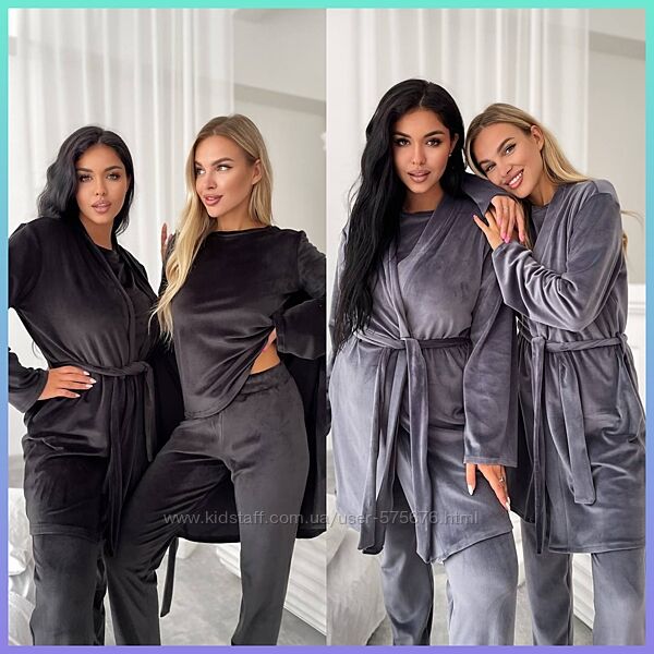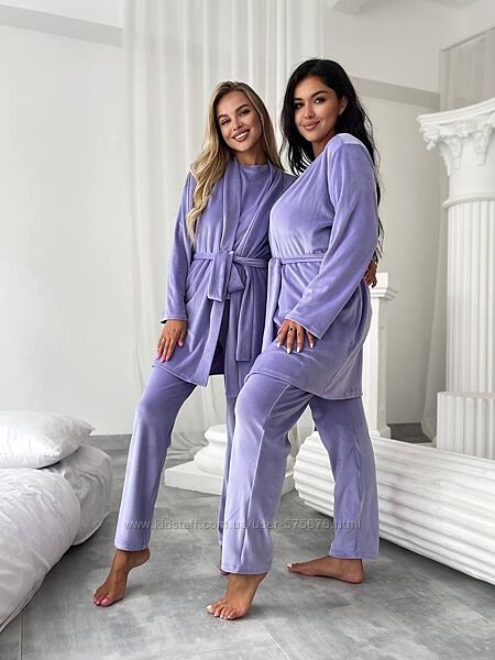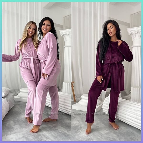 Подробное описание: р.42 до 56р. Хіт продаж Домашній велюровий костюм піжама трійка 14 кольорів