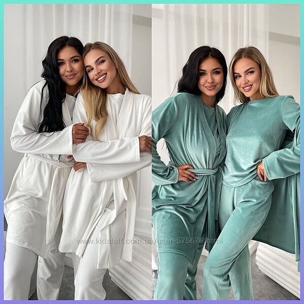 р.42 до 56р. Хіт продаж Домашній велюровий костюм піжама трійка 14 кольорів