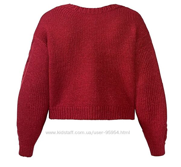 Опис виробника: Сучасна стильна коротка форма зі спущеними плечима З ґудзиками З візерунком "коси" на рукавах і тілі Ребристі манжети на рукавах і внизу матеріал: 76% поліакрил, 10% поліамід, 9% поліестер, 5% шерсть виміри: Довжина 56 см, ширина під рукавами 63см, рукав 46см