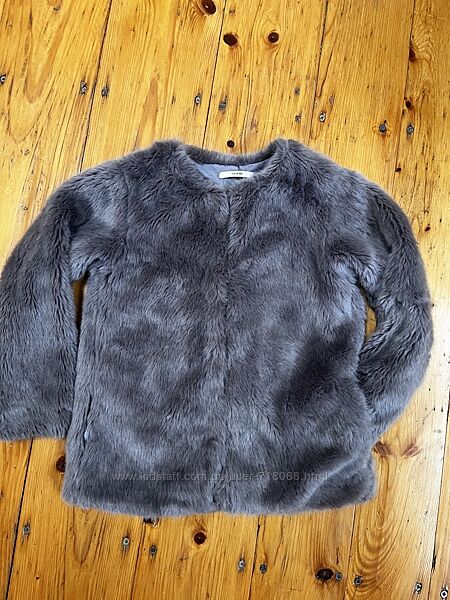 М´яка, легка, фірмова, коротка штучна шубка сіро-сріблястого кольору.Має е гачки/защіпки, та 2 середні кишеньки.
