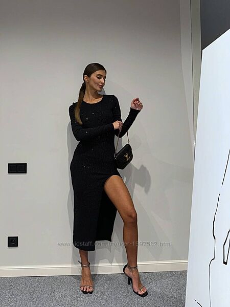 Подробное описание: Вечірня блискуча облягаюча сукня міді з паєтками з розрізом на нозі чорна