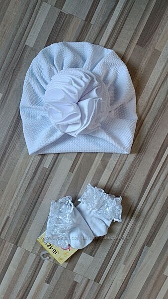 Комплект шапкой носочки для новорожденной девочки в разных цветах.Идеально подойдёт как на подарок так и на фотосессию.